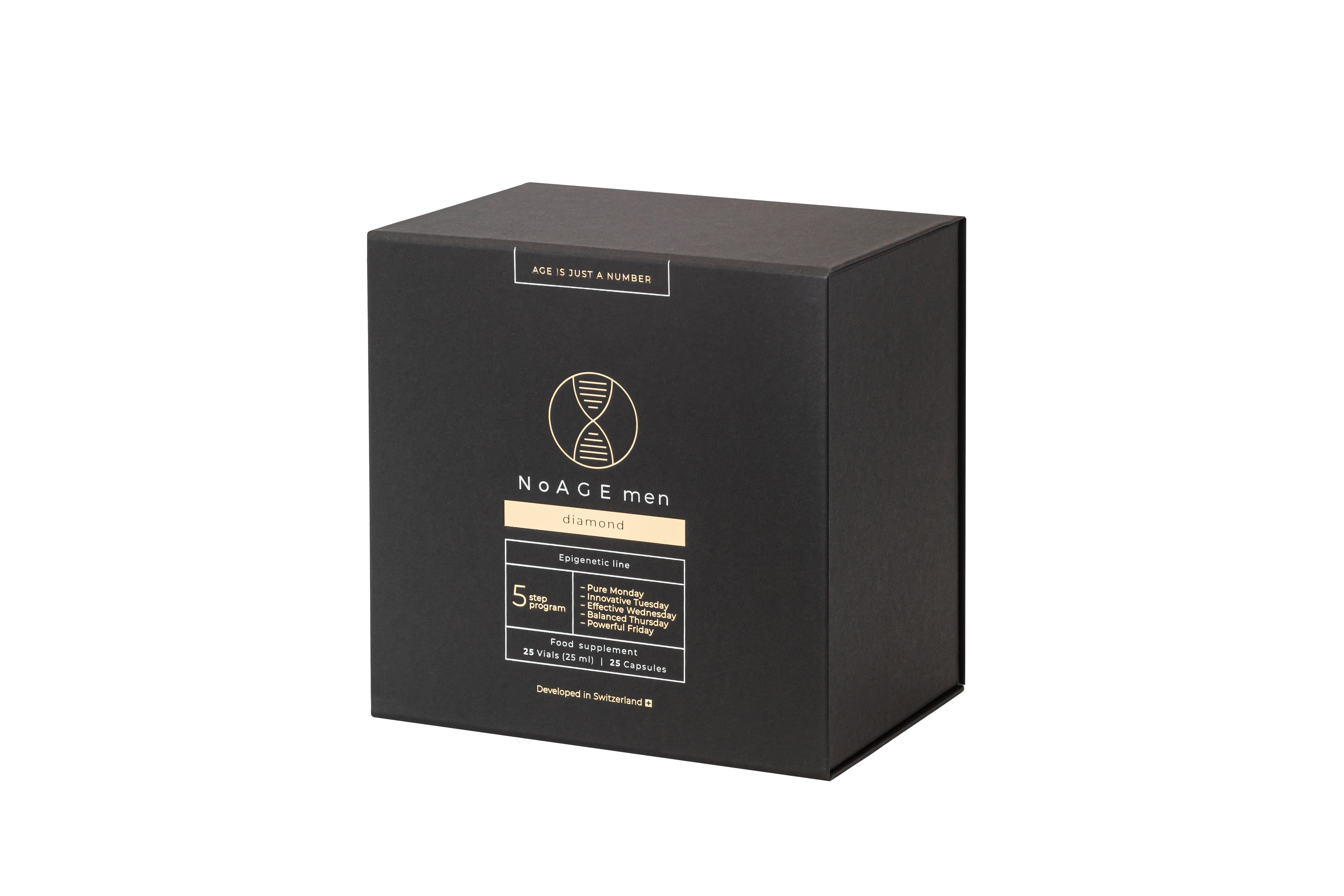 NoAGE men diamond – tai prabangi 5 savaičių programa vyrams, skirta kovoti su išoriniais ir vidiniais amžėjimo požymiais bei sukurta vyrų energijai, veržlumui ir seksualiniam pajėgumui palaikyti. Šis ritualas skirtas vyrams nuo 30 metų.