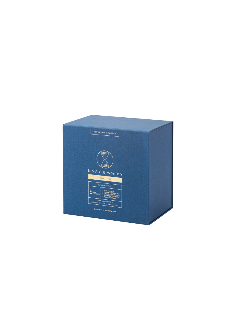 Mokslininkų sukurtoje NoAGE ilgaamžiškumo formulėje dera šimtmečius medicinoje naudojami augaliniai ekstraktai, vitaminai ir mineralai, veikiantys ląstelių lygmenyje. Kiekviena NoAGE women sapphirus programos diena orientuota į vis skirtingą poveikį moters sveikatai.