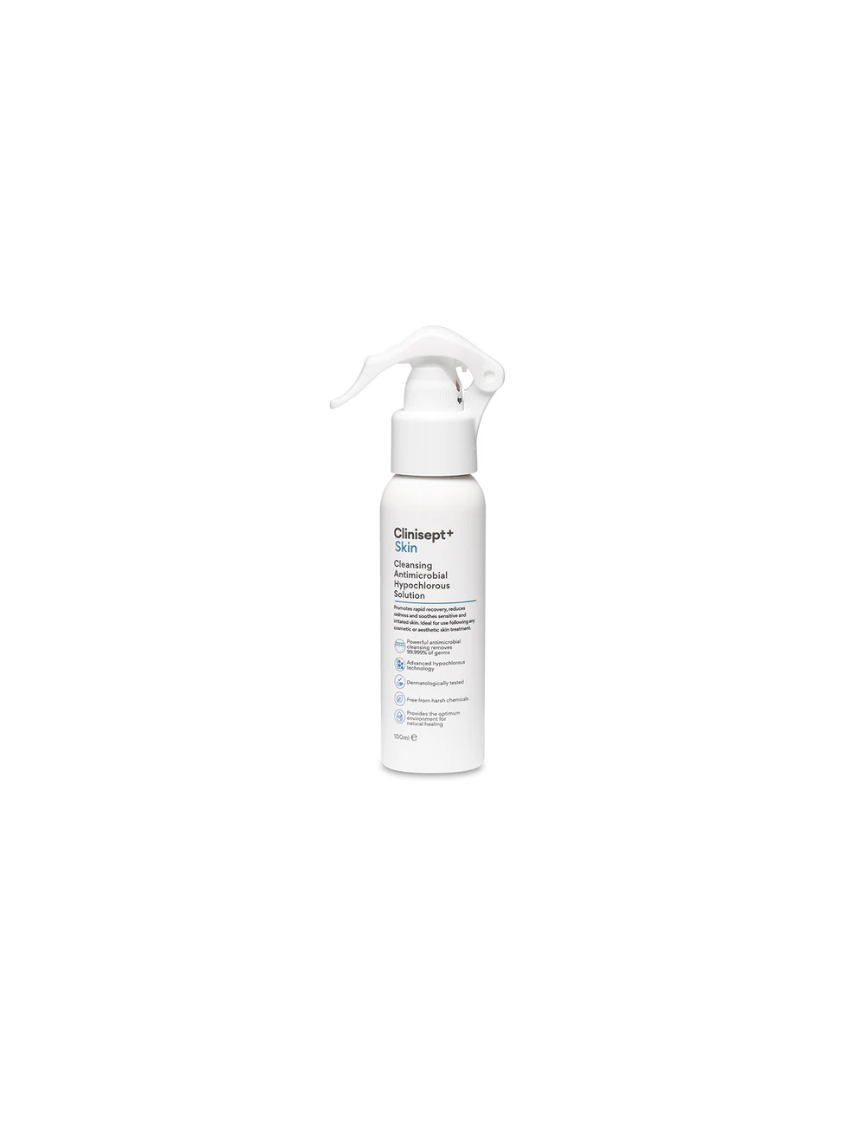 Sudedamosios dalys: Hipochlorito rūgštis, vanduo, fosforo rūgštis. Clinisept+ Skin – tai itin grynas hipochlorito tirpalas, pagamintas pagal GMP ISO 22716 reikalavimus. Atitinka BS EN 1040, BS EN1276, BS EN13727, BS EN13624, BS EN1650, BS EN14476, BS EN13704 standartus.