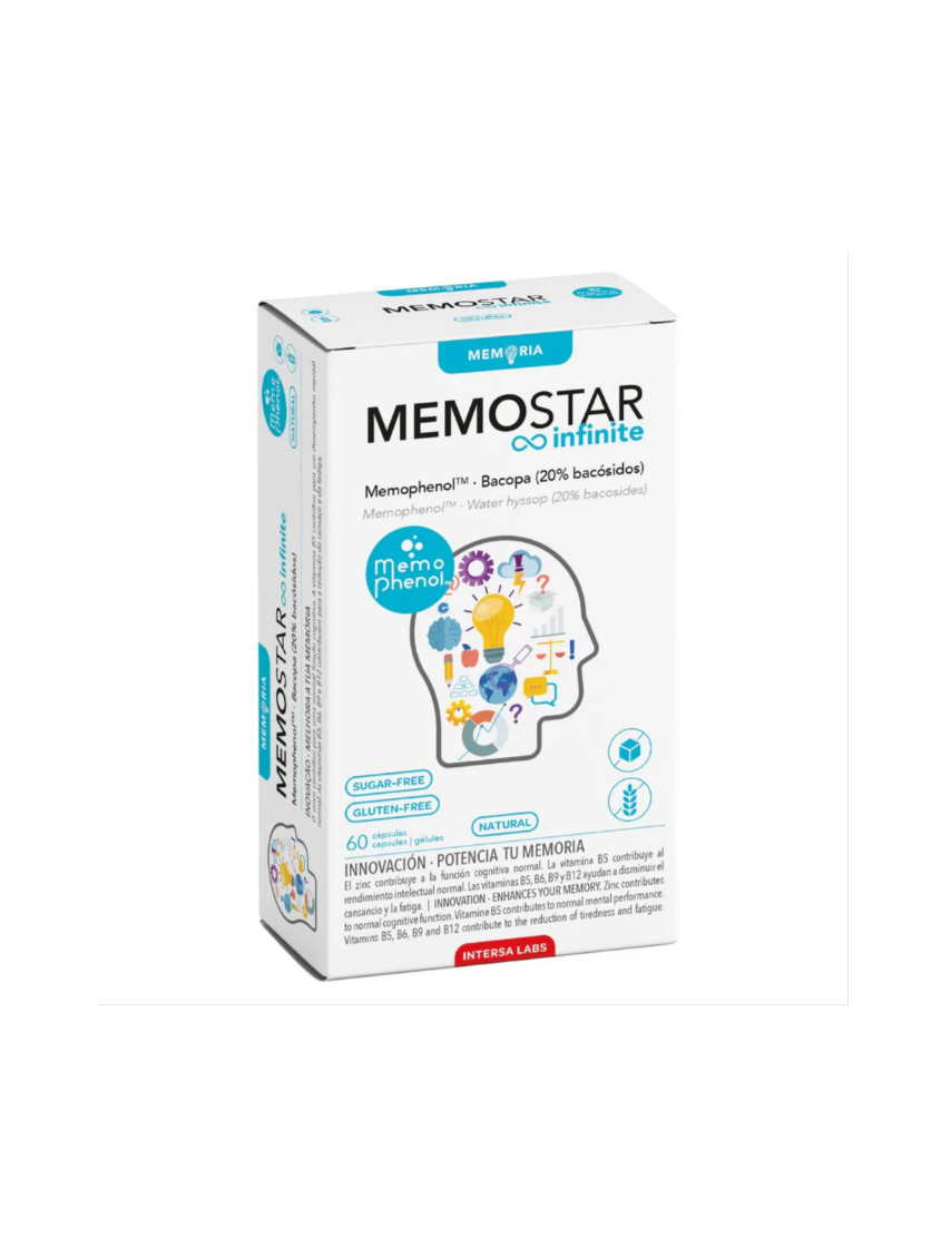 Sudedamosios dalys: polifenolių kompleksas MEMOPHENOL™ (nesmulkintų tikrojo vynmedžio [Vitis vinifera L.] ir siauralapių šilauogių [Vaccinium angustifolium A.] vaisių ekstraktai), kapsulės apvalkalas hidroksipropilmetilceliuliozė, mėlynžiedės taškuonės [Bacopa monnieri (L.) Wettst.] lapų sausasis ekstraktas, dviskiaučio ginkmedžio [Ginkgo biloba L.] lapų standartizuotas sausasis ekstraktas, cinko gliukonatas, kukurūzų krakmolas, lipnumą reguliuojanti medžiaga riebalų rūgščių magnio druskos (E 470b), kalcio D-pantotenatas, cianokobalaminas, piridoksino hidrochloridas, pteroilmonoglutamo rūgštis.